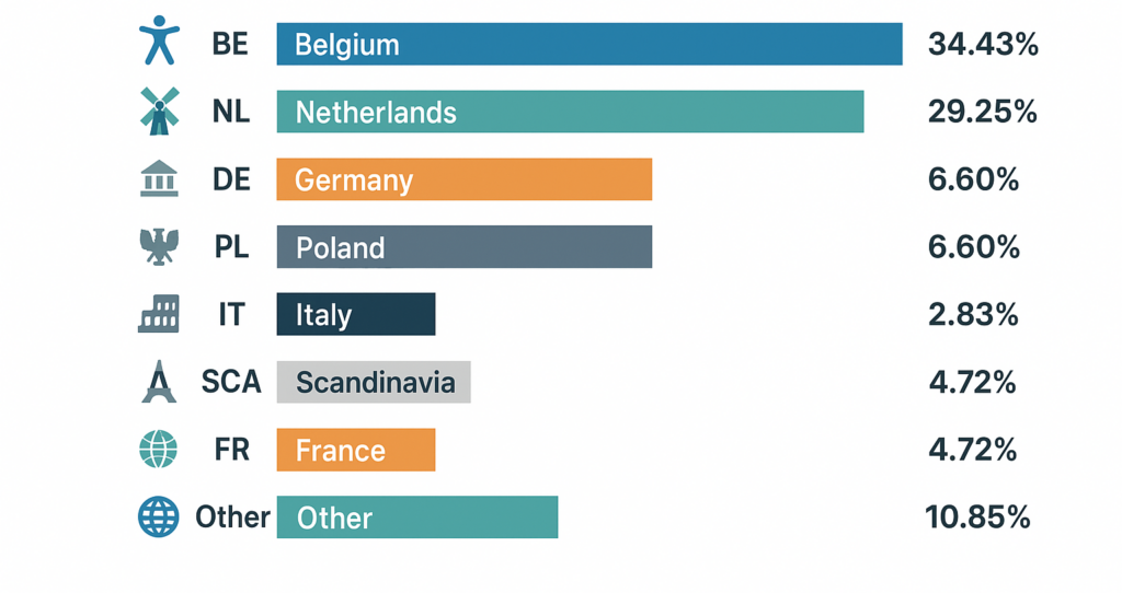 Some 20,000 high-quality European visitors from Belgium, the Netherlands, France, the UK, Ireland, Germany, Switzerland and Scandinavia. An enjoyable, welcoming trade fair with a strong VIP offering. The offering is presented in a convivial ambiance in which buyers feel at home. This is an atmosphere that encourages buying
